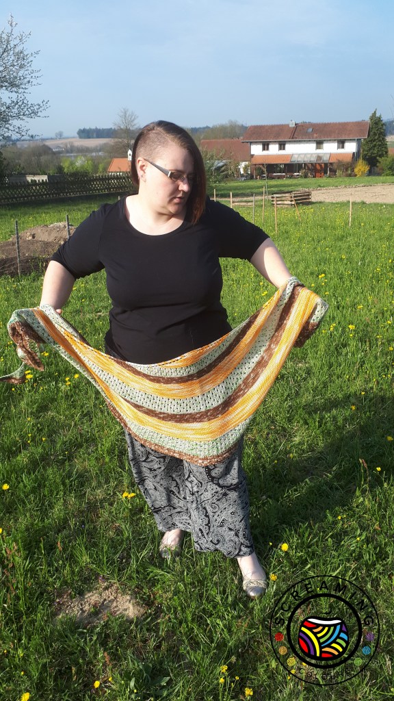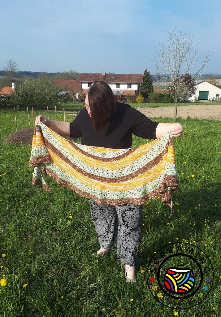 Los geht der KAL (= kurz für Knitalong) am 1. Juli 2020 und wir enden am 31. August 2020. Das sind zwei Monate Zeit, um das Tuch gemütlich stricken zu können.