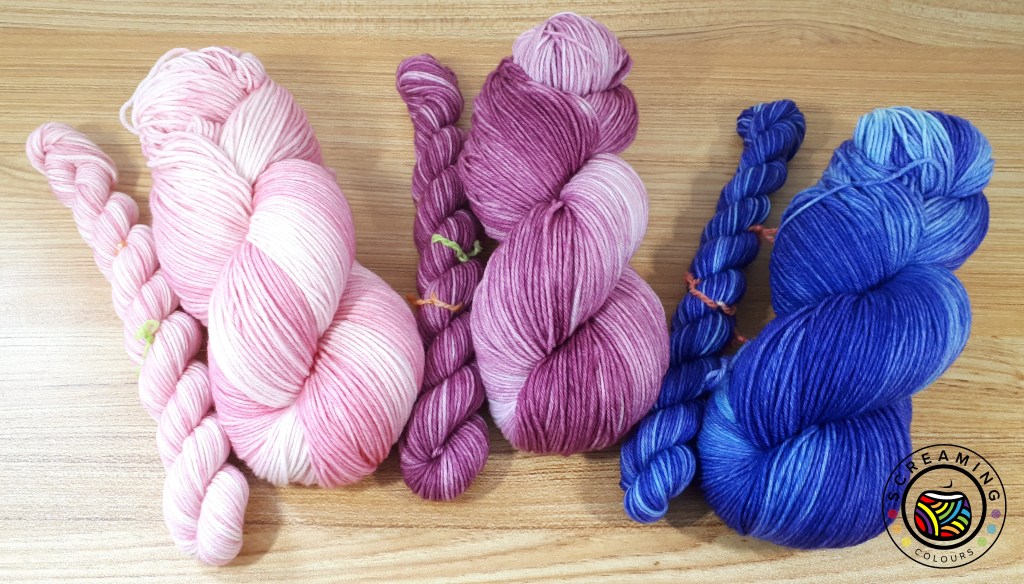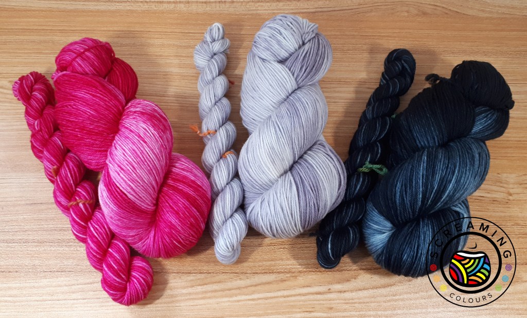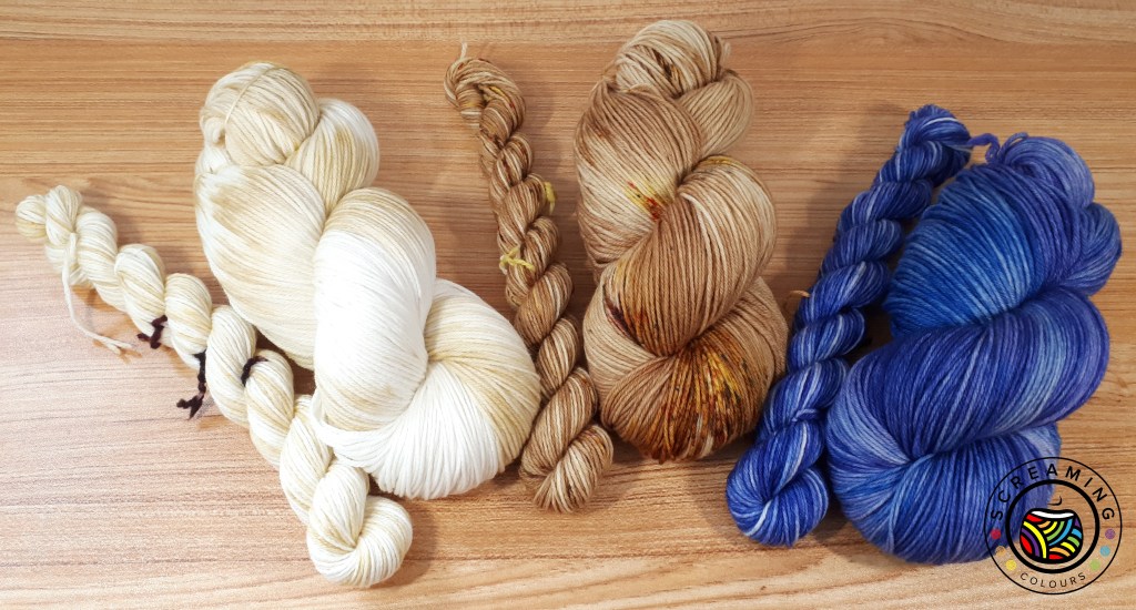 Und natürlich schicke ich – als Handfärberin dich nicht ohne Wolle los. Ich habe für dich folgende sechs farblich passende Kits für dein ganz persönliches Tuch zusammen gestellt. Die Kits findest du hier.