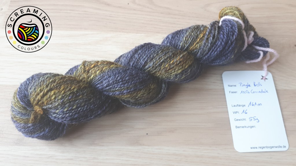 Zusammen mit meinem bereits versponnenem Adventskalender von 2019, dem versponnenen Kammügen Eis und Schnee und Bratapfel werde ich den Kammzug Jingle Bells in einen Marled Magic Sweater von Stephen West verwandeln. Das ist ein wunderschöner Poncho-Pullover.