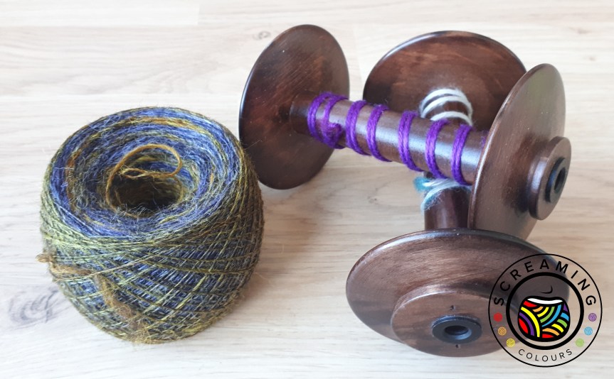 Da ich dieses Garn zusammen mit den zuletzt versponnenen Garnen in einem Projekt verstricken möchte, habe ich es natürlich wieder auf die selbe Art und Weise versponnen.