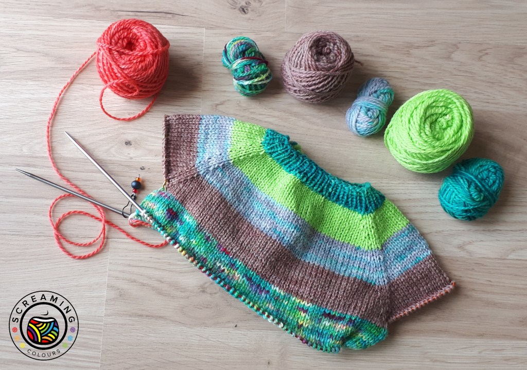 Daher hatte ich mich dazu entschieden die vielen ColourEco-Reste, die ich vom Maschenproben stricken und Minis wickeln übrig habe, in einen Raglan-Pulli für meinen nahenden Knirps zu verarbeiten.