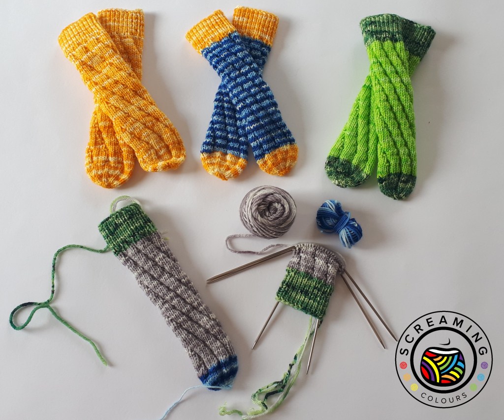 Und so ist an den Babysöckchen tatsächlich nicht sonderlich viel passiert. Ich habe beim vierten Paar nun beim zweiten Socken mit den Musterrapports angefangen. Aber mehr als drei habe ich davon noch nicht gestrickt.