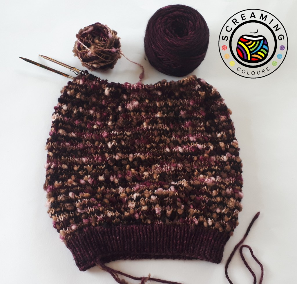 Und so konnte ich nicht umhin eine neue Idee einfach anzustricken, obwohl es vielleicht sinnvoller gewesen wäre, einfach erstmal alte Projekte zu beenden. Jedoch brauchte ich das für mein Gemüt. Die Idee aus meiner ColourBig und der ColourSlub einen Cowl zu entwerfen, habe ich schon bereits, seitdem das Noppengarn in meinem Shop eingezogen ist.