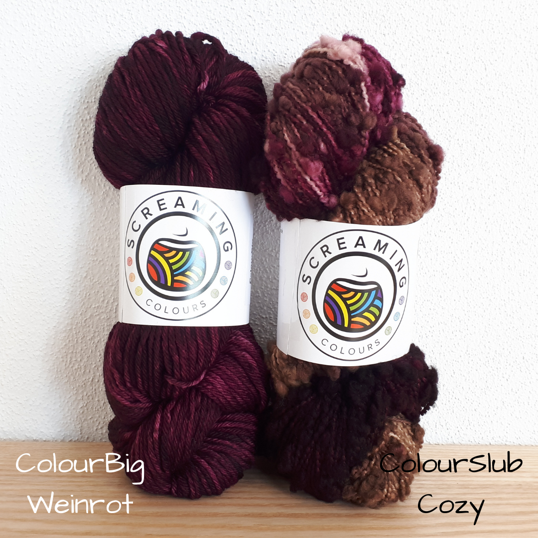 Dieses Jahr sind (bisher) zwei neue Garnbasen in meinem Shop eingezogen. Zum einen die ColourBig und zum anderen die ColourSlub. Beide sind Garne in der Stärke Aran. Also schon ziemlich voluminös. Perfekt also für die kühlere Jahreszeit. Und da beide eine Lauflänge von 160m auf 100g haben sind sie auch perfekt zum kombinieren!