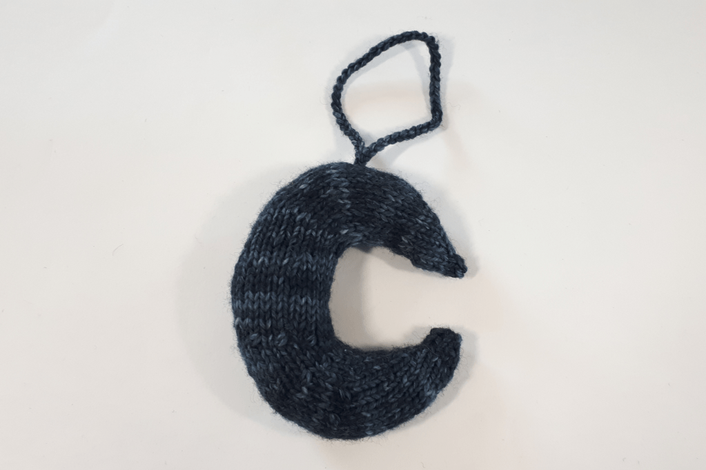 Türchen Nr. 10 ist geöffnet. Wir stricken heute gemeinsam einen Mond. Also wenn du schon immer einmal gestrickten Baumschmuck für Weihnachten haben wolltest, dann hast du jetzt die Gelegenheit!