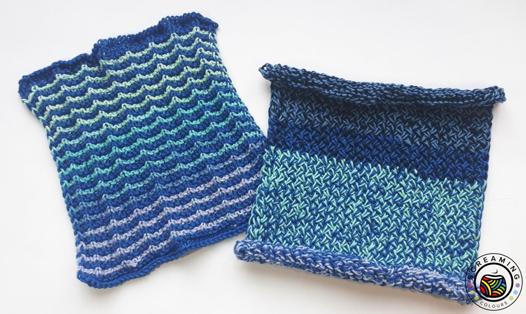 Diese Zeiten liegen allerdings schon eine Weile hinter mir und so liegen diese Reste eigentlich nur noch im Weg herum und brauchen eine neue Bestimmung. Die Spültücher sind dafür perfekt geeignet. Und je nach Muster, fressen die wirklich ganz schön was an Garnresten weg. Mein Februarlappen ist hier das beste Beispiel. Hier nimmt man den Faden doppelt und hat außerdem ein Muster, das mehr Garn verbraucht als normales Glatt rechts gestricktes. Perfekt!
