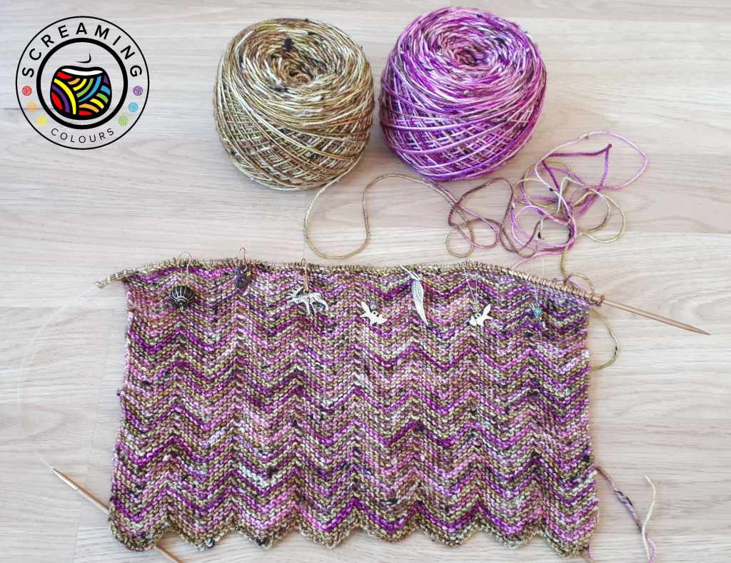 Den Zick Zack Scarf stricke ich mit der ColourNeps. Ein Garn, das ich bisher nur in kleiner Auflage im Specialsbereich in meinem Shop hatte. Aktuell ist es nun ausverkauft. Da die Nachfrage aber recht groß nach diesem Garn zu sein scheint, wird es bald auch fest in den Shop einziehen. 🙂
