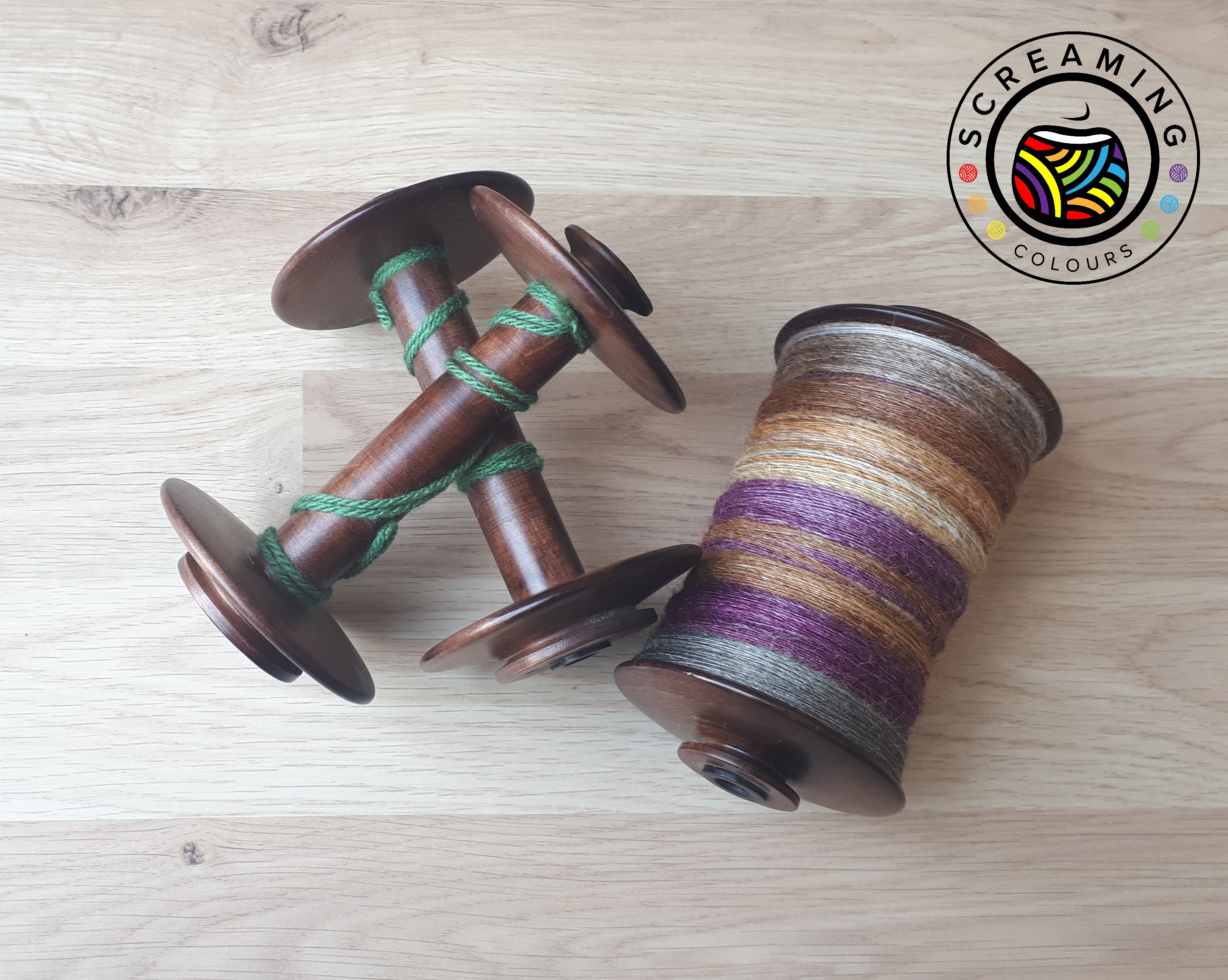 Anschließend habe ich je zwei Spulen miteinander verzwirnt, sodass ich 3 große Garnstränge mit je ca. 200g erhalten habe. Hierfür habe ich beim Verzwirnen meine Jumbospulen benutzt. Ich mag einfach große Stränge lieber. Das bedeutet bei einem Pullover einfach weniger Fäden vernähen. 😀