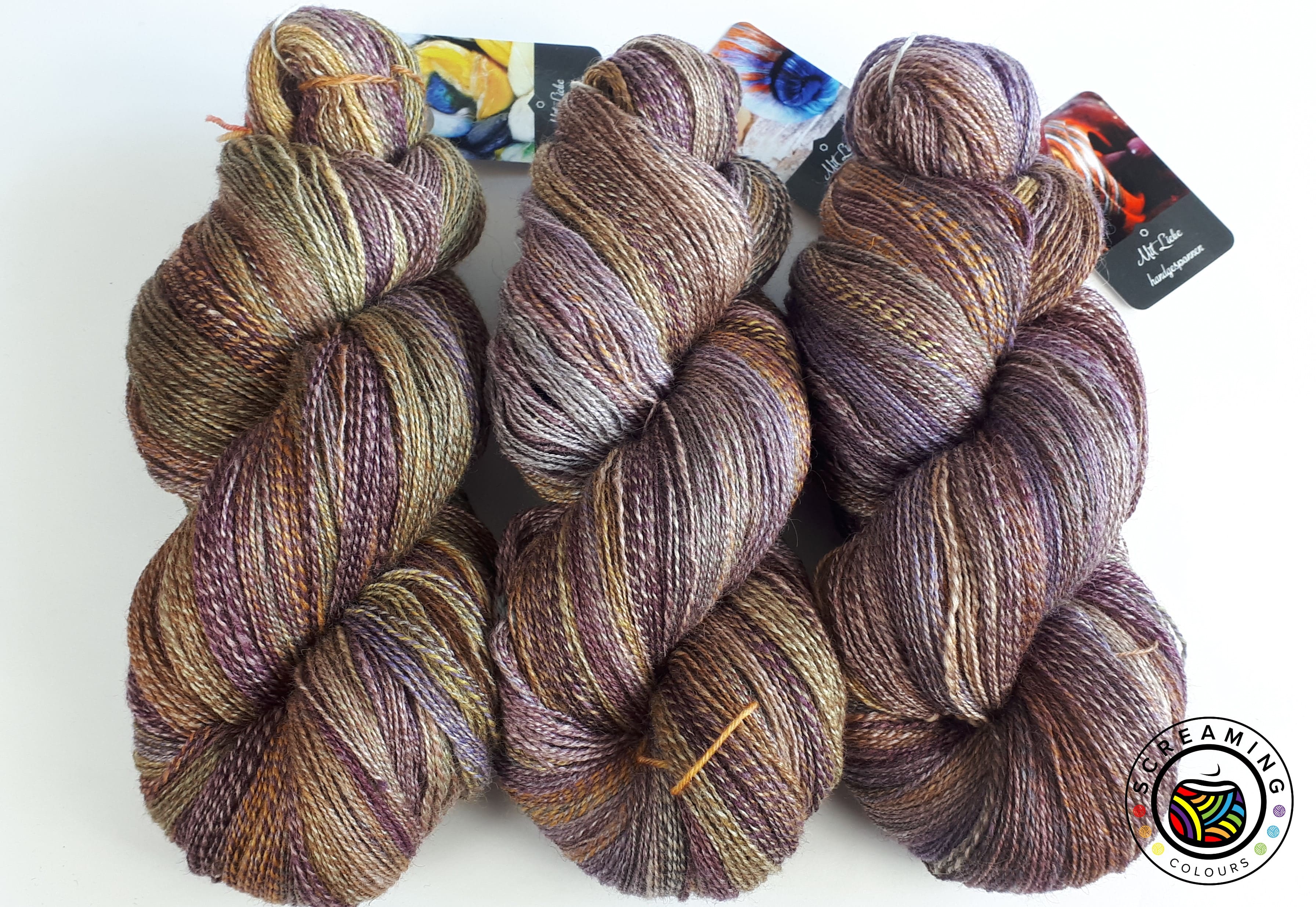 Ich habe hier im Übrigen auch nicht darauf geachtet, dass die Kammzüge aus den gleichen Fasern bestehen. Ganz im Gegenteil. Die einzelnen Fasern sind tatsächlich höchst unterschiedlich. Auch das macht das fertige Garn nur umso spannender in Haptik und Optik.