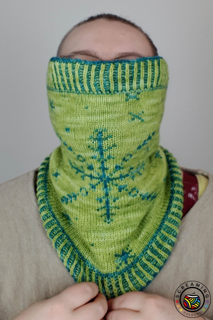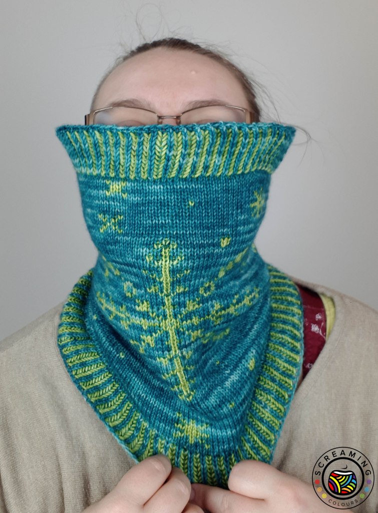 Warm und kuschelig ist der Cowl Yakflocke auf jeden Fall. Er wird in der Doubleface-Technik gestrickt. Es ist also ein doppellagiges Gestrick, das besonders angenehm warm ist. Und das beste: Es gibt 2 Tragevarianten in einem Strickstück. Je nach Lust und Laune kannst du entweder die eine oder die andere Seite nach aussen tragen.