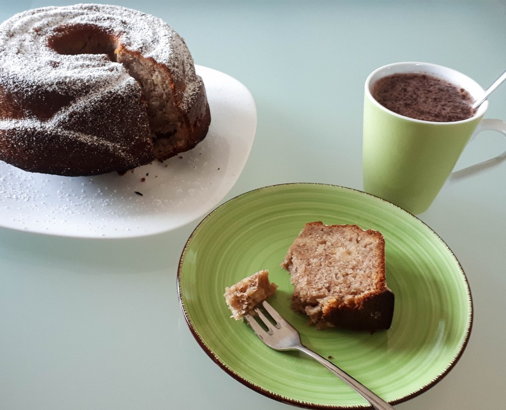 - Das Ganze in eine gefettete Napfkuchen- oder Kastenform geben und bei 180 Grad Heißluft (oder 200 Grad Ober-/Unterhitze) 60 Minuten backen! Stäbchenprobe nicht vergessen. 😉