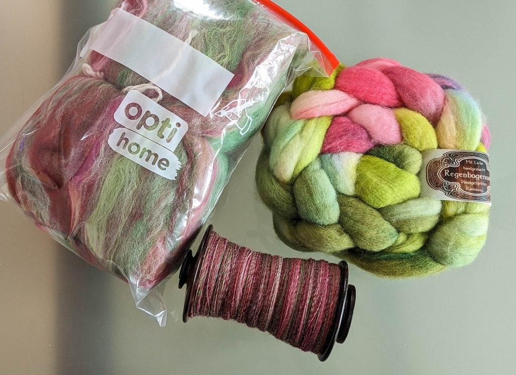 Ich überlege immer noch, wie ich den Kammzug am besten verspinne. Am liebsten spinne ich Kammzüge ja einfach am Stück weg. Allerdings wären dann die Farbabschnitte sehr blockhaft im fertigen Garn verteilt. Meine aktuelle Überlegung läuft daraus hinaus, den Kammzug längs in vier einigermaßen gleich große Abschnitte aufzuteilen und so die Farben gleichmäßiger über den Faden zu verteilen. Wenn du einen anderen, vielleicht besseren Vorschlag hast, dann schreib ihn mir gerne in die Kommentare. Ich bin immer offen für Ideen und Anregungen.