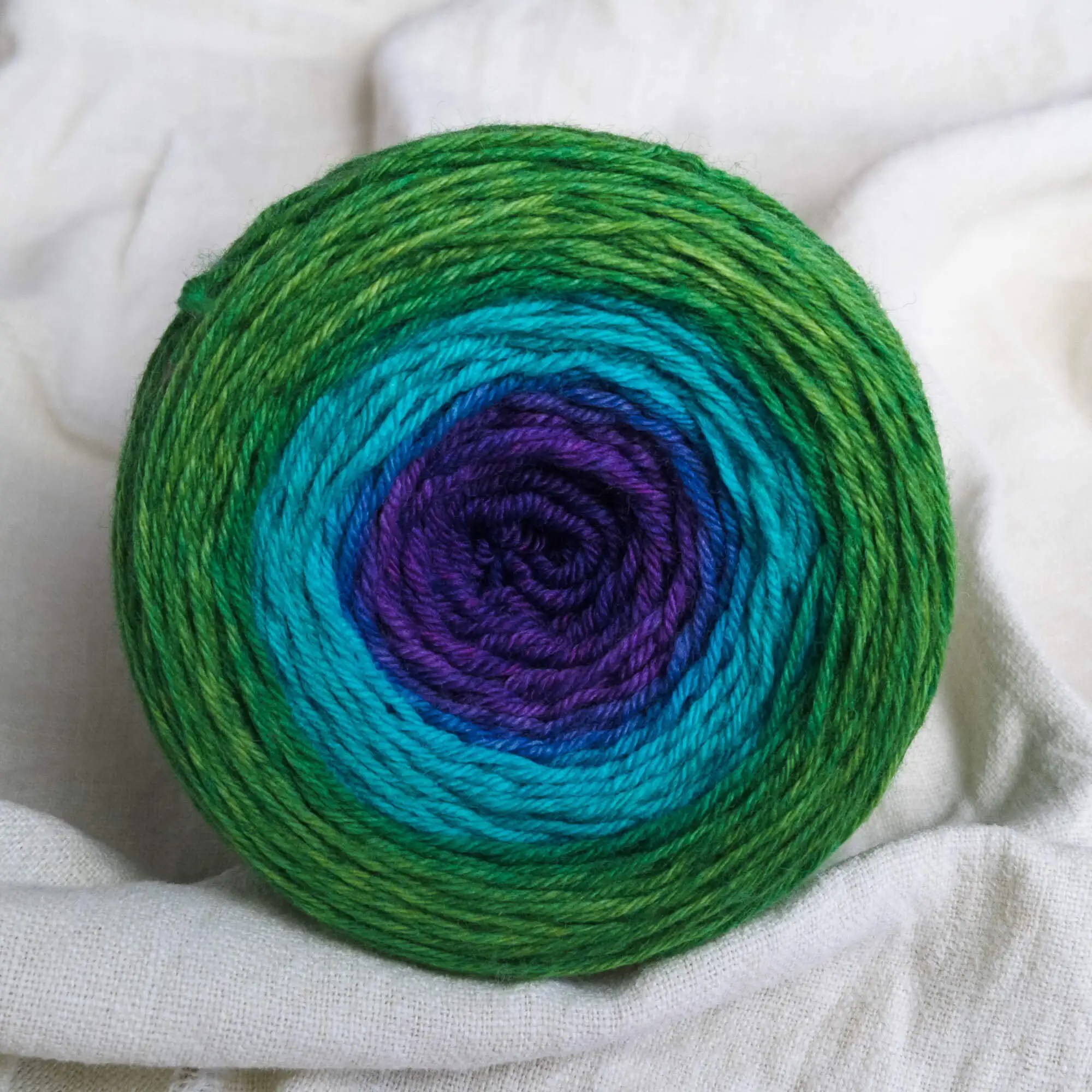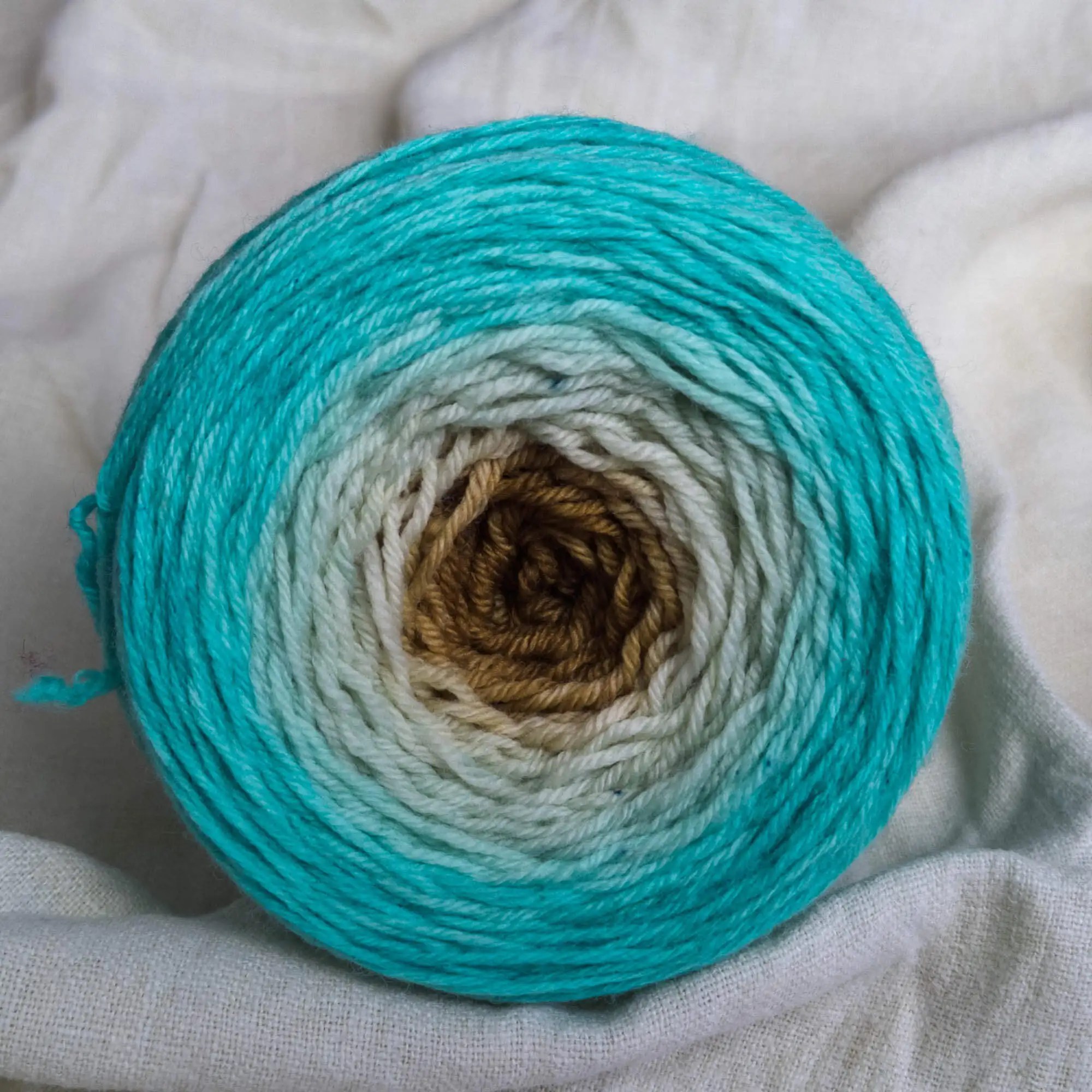 An diesem Produkt arbeite ich schon länger mehr oder weniger intensiv. Denn die Idee von handgefärbter Farbverlaufswolle hat mich einfach nicht losgelassen. So langsam nimmt das auch Formen an, sodass ich in den Verkauf gehen kann. Diese vier allerersten Farbverlaufsgarne sind meine ersten Experimentierwerke. Sie sind wunderschön geworden und einfach zu schade, dass sie bei mir hier nur verstauben.
