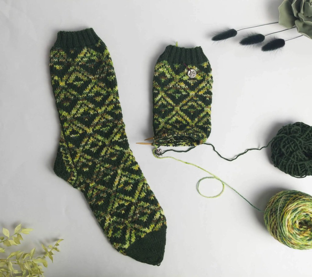 Nun wächst auch der zweite Socken munter vor sich hin. Der Schaft ist schon so gut wie fertig. Aktuell bin ich bei den Zunahmen für die Ferse. Und wieder einmal habe ich das Gefühl, dass das Stricken beim Fair Isle-Stricken einfach viel schneller voran geht. Und das obwohl man ja dabei zählen und aufs Muster achten muss und zwischendrin seine Zeilenmarker weiter schieben muss. Ich glaube, das aufwendigere Strickmuster bietet grad genug Ablenkung und Zerstreuung für mein Hirn.