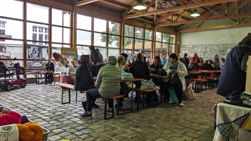 Schnuckelig klein aber fein ist es im Landwirtschaftsmuseum in Regen untergebracht. Für die Verpflegung ist gut gesorgt und es gibt genug Sitzplätze, um gemütlich verweilen zu können. Wettertechnisch hatten wir an diesem Wollfest-Sonntag dann das komplette Gegenteil zu Monsheim: Regen und nur knapp über 10°C. Bestes Strickwetter also. Da mag man doch erst so richtig mit seiner Wolle kuscheln.