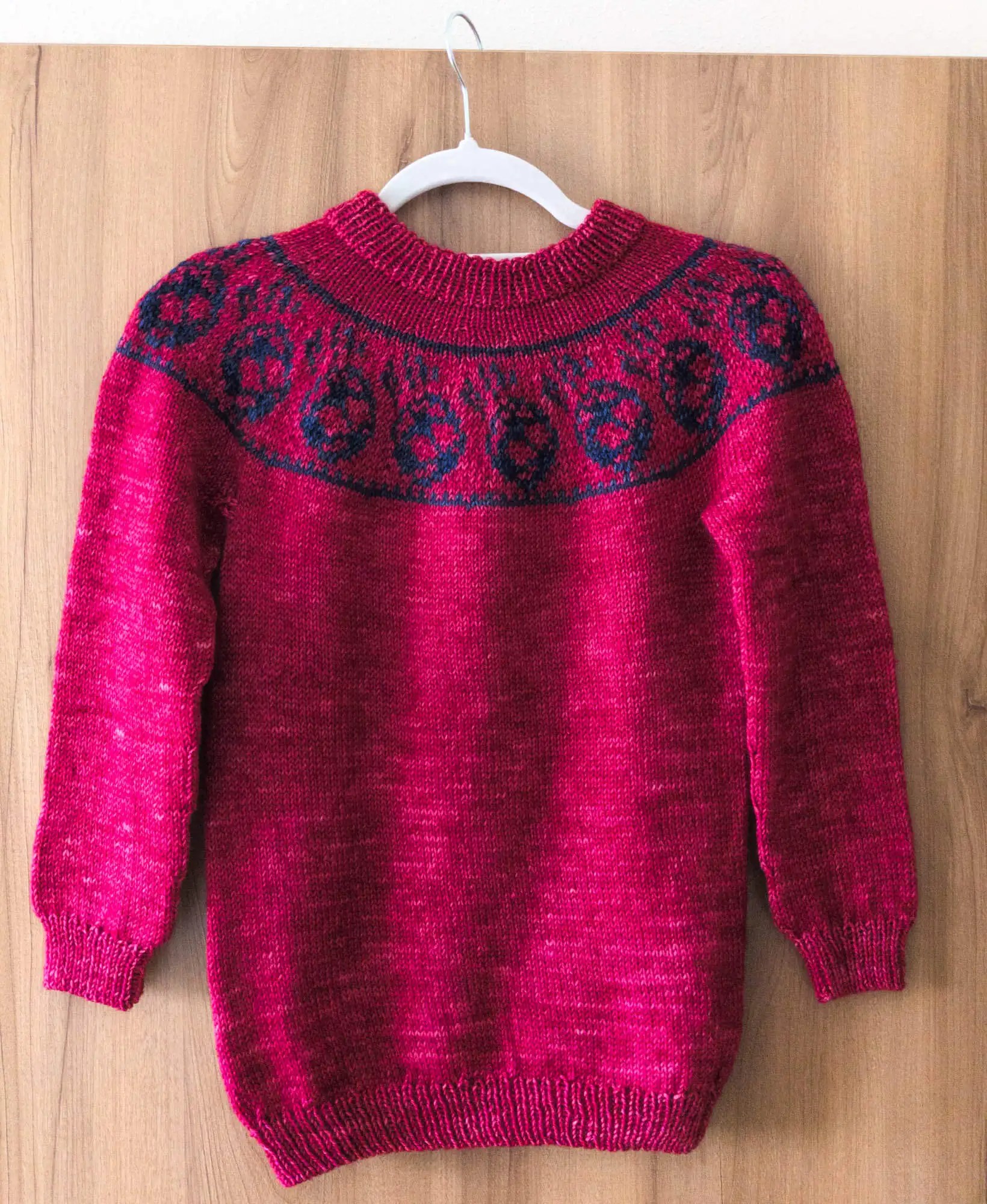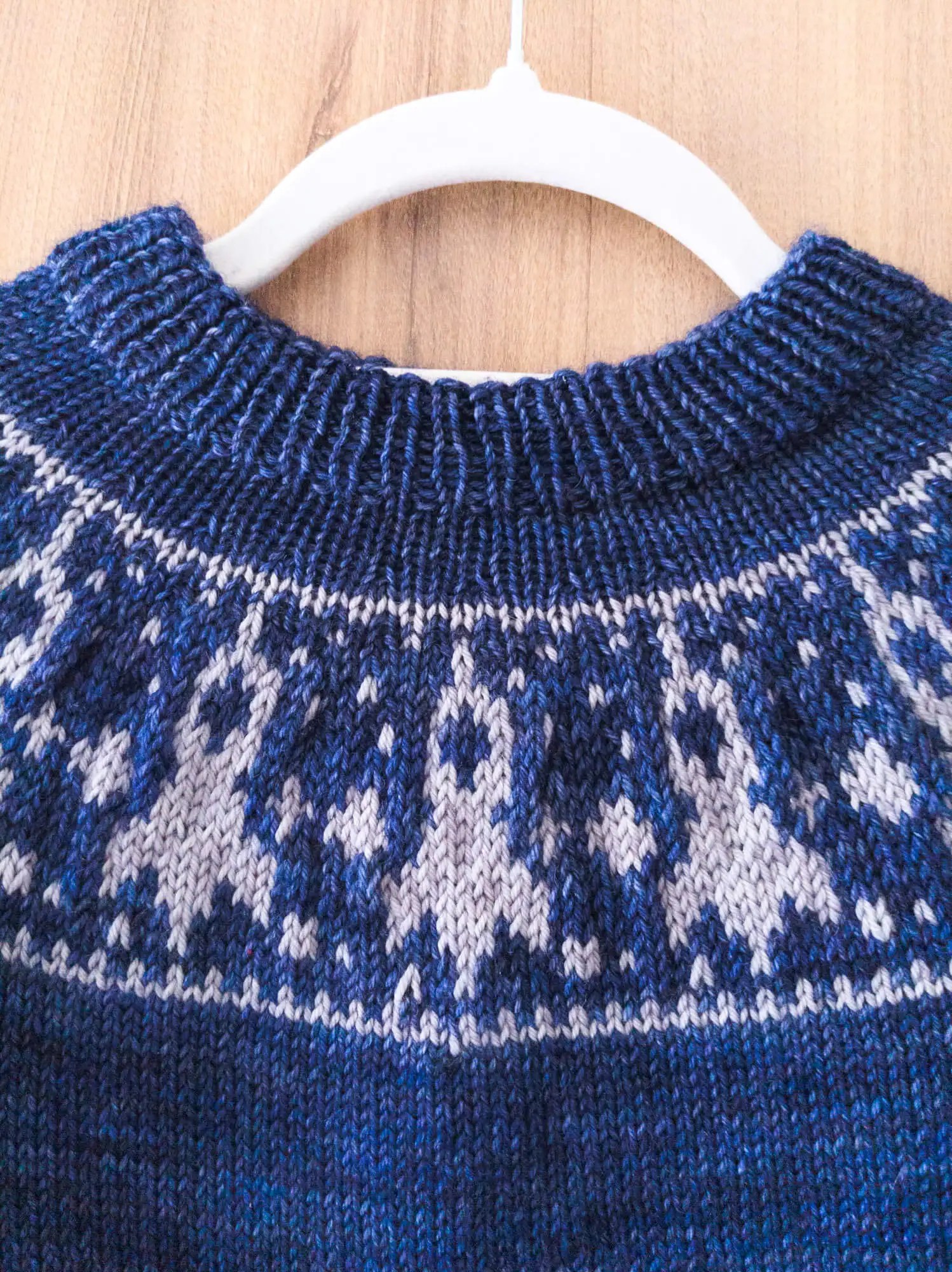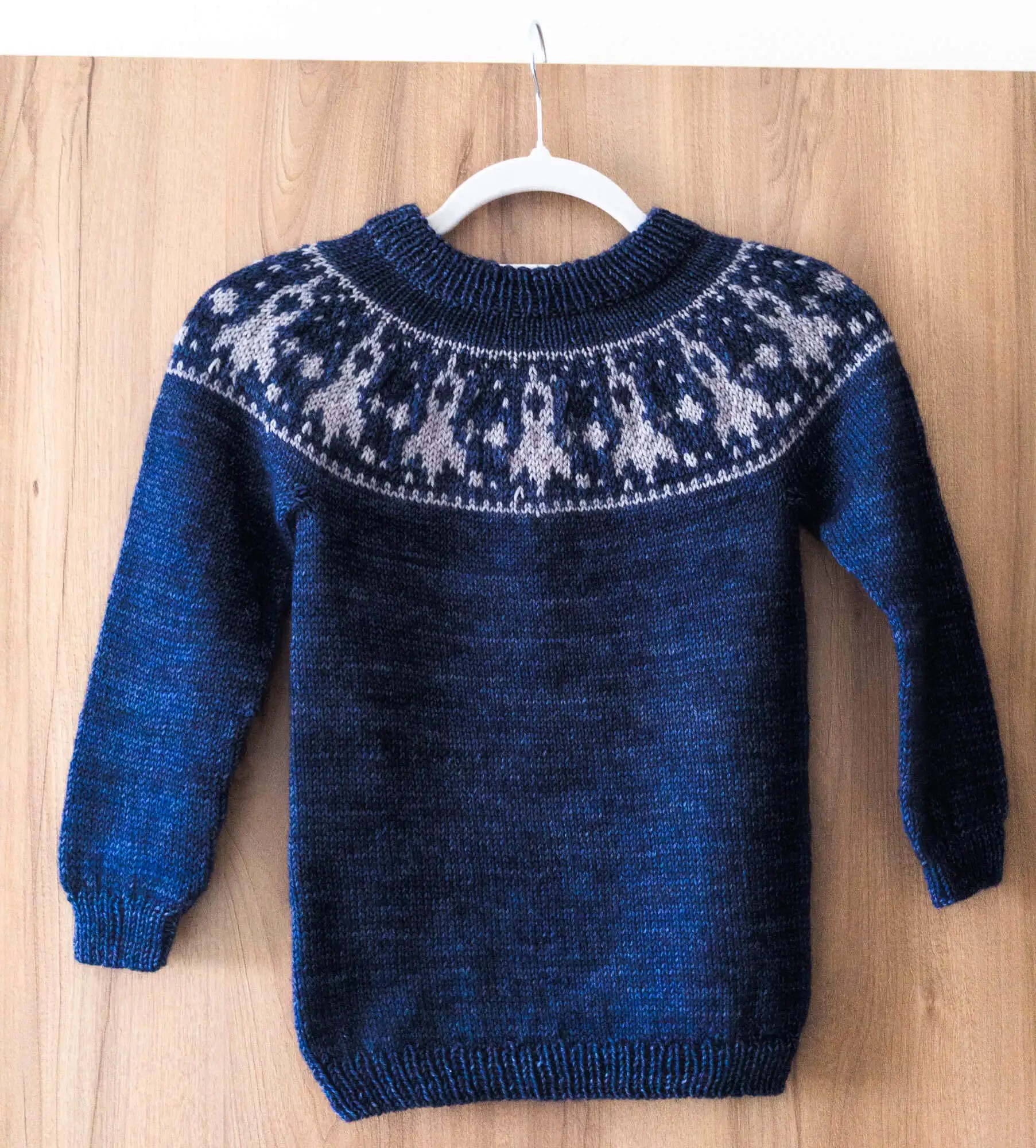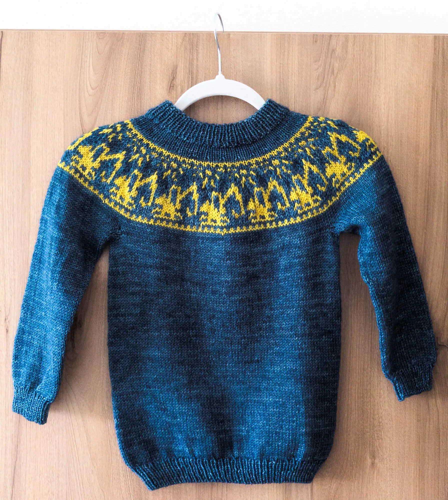Anfang Oktober 2025 hatte ich die fixe Idee, mal nicht ne Menge Geld in viel Plastikspielzeug für meine Neffen und meinen Sohn zu investieren, sondern lieber zu Nadeln und Faden zu greifen. Da mich die Colourwork-Faszination nach wie vor fest im Griff hat, war schnell klar, dass ich den Kids jeweils einen Pullover mit Einstrickmuster stricken möchte. Vier Pullover in drei Monaten, während ich auf 5 Märkten unterwegs bin? Easy, oder?